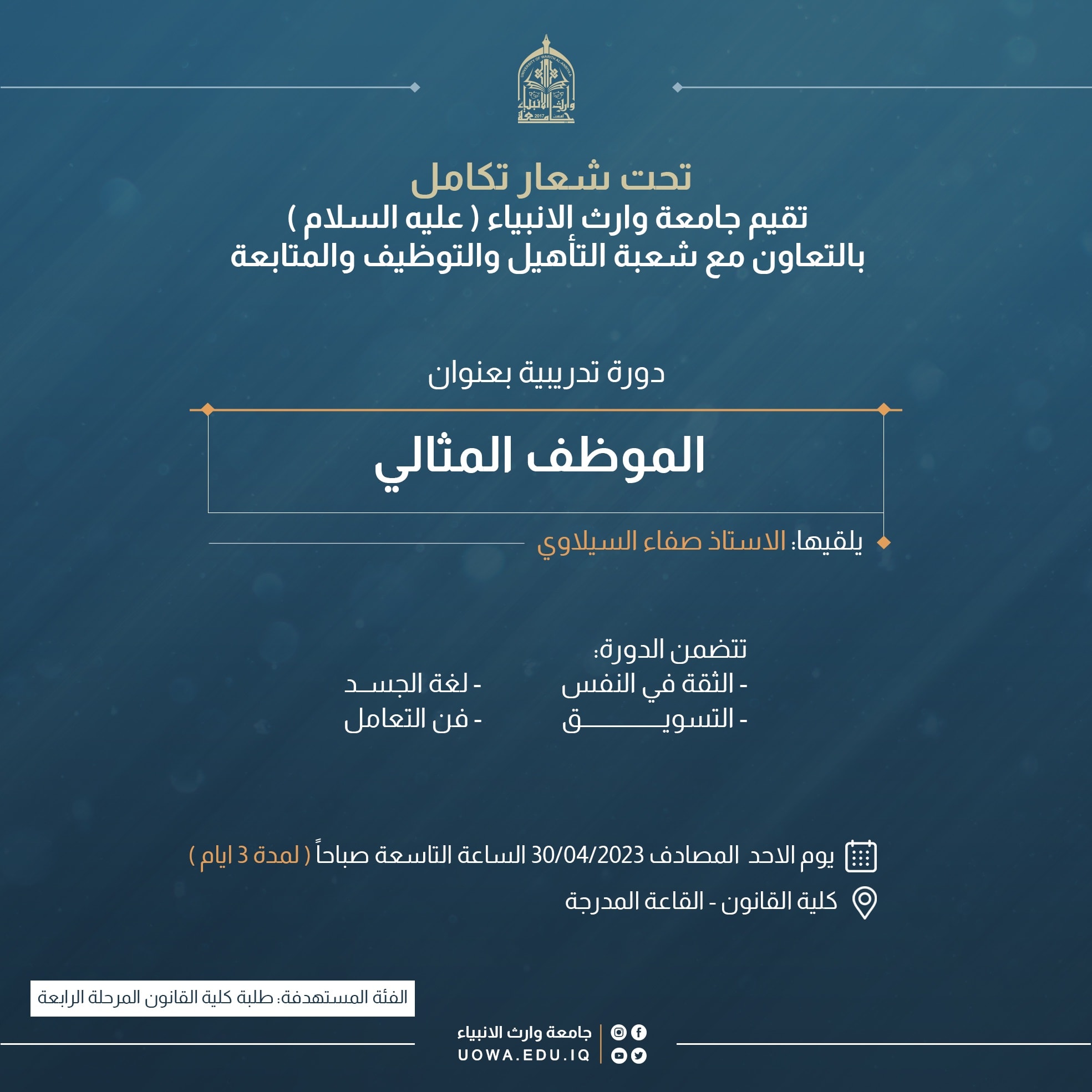 تقيم جامعة وارث الأنبياء (عليه السلام)، وبالتعاون مع شعبة التأهيل والتوظيف والمتابعة