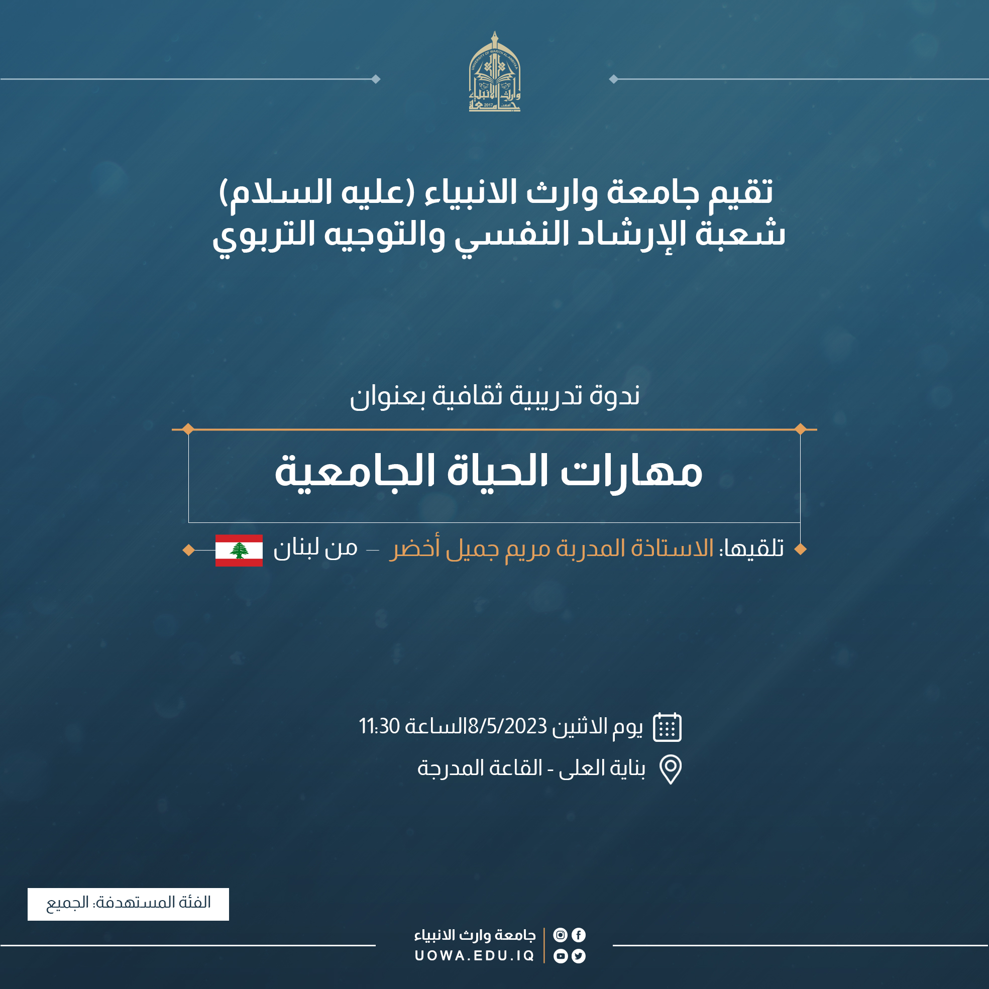 ندوة تدريبية ثقافية بعنوان (مهارات الحياة الجامعية)