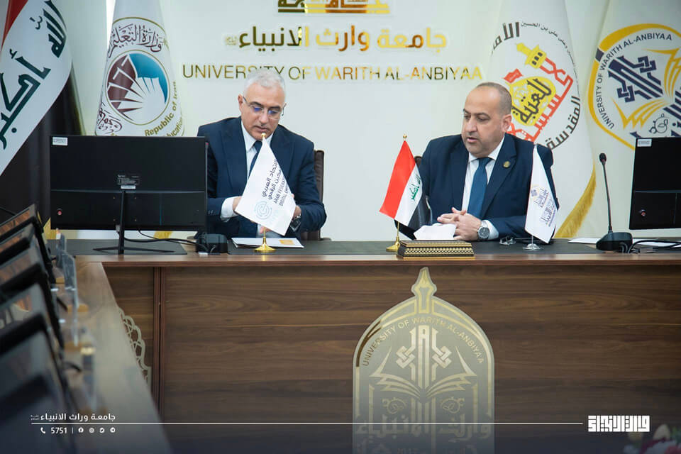 Professor Dr. Ibrahim Saeed Al-Hayawi, President of the University of Warith Al-Anbiyaa (PBUH), signed a scientific cooperation agreement with the Arab Union for Digital Empowerment in the State of Libya, represented by its President, Professor Dr. Abbas Al-Jubouri, in the presence of the university’s vice presidents.
