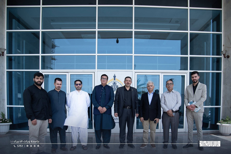 University of Warith Al-Anbiyaa (peace be upon him) welcomed an official delegation from the Rahmat Lil Aalameen Authority of Pakistan, received by the Assistant President of the University, Prof. Dr. Naufel Al-Araji, and the Dean of the College of Medicine, Prof. Dr. Ali Al-Ghizzi. The visit aimed to explore the university’s academic experiences and its modern infrastructure.