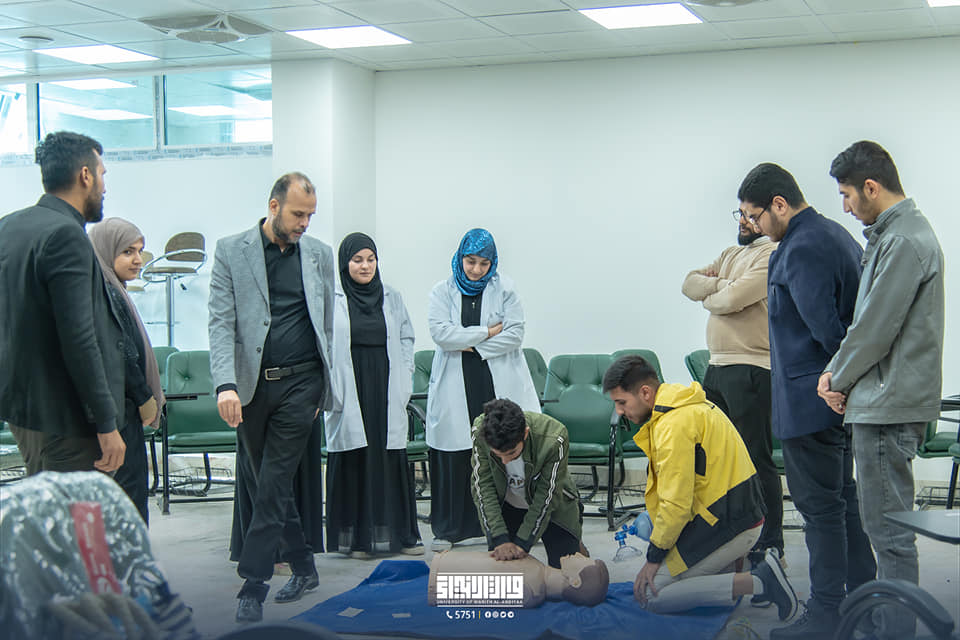 The College of Medicine at the University of Warith Al-Anbiyaa, in coordination with the Iraqi Red Crescent Society, Karbala Branch, organized a training workshop for the students of the college on "First Aid." The workshop included training participants on how to provide first aid to patients and injured individuals in emergency situations and accidents, covering all necessary steps to deal with these situations in a simplified manner, with practical application to facilitate learning and wise decision-making to prevent these problems.