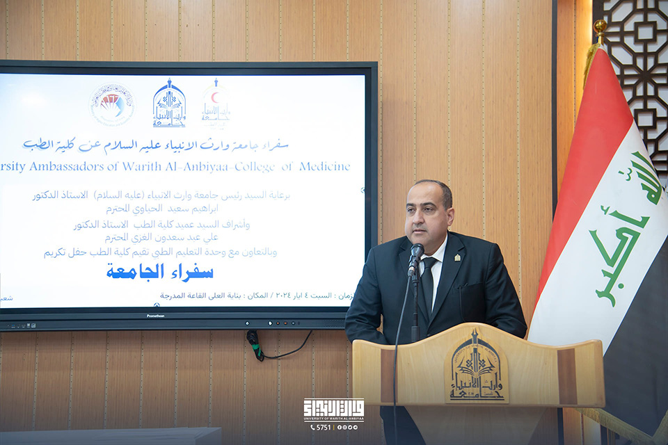 Under the patronage of the President of the University, Professor Dr. Ibrahim Saeed Al-Hayawi, and in the presence of the Dean of the Faculty of Medicine, Professor Dr. Ali Abd Saadoun Al-Ghazi, the Deanship of the Faculty of Medicine, in cooperation with the “Warith Elevate” team and the Department of Quality Assurance and University Performance, launched the project (Preparation and Selection of University Medical Ambassadors), which aims to represent the university and the country, whether locally or internationally.