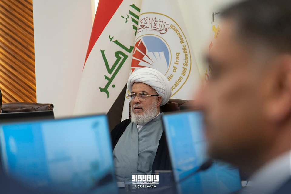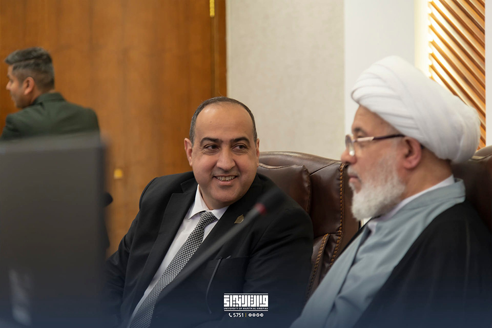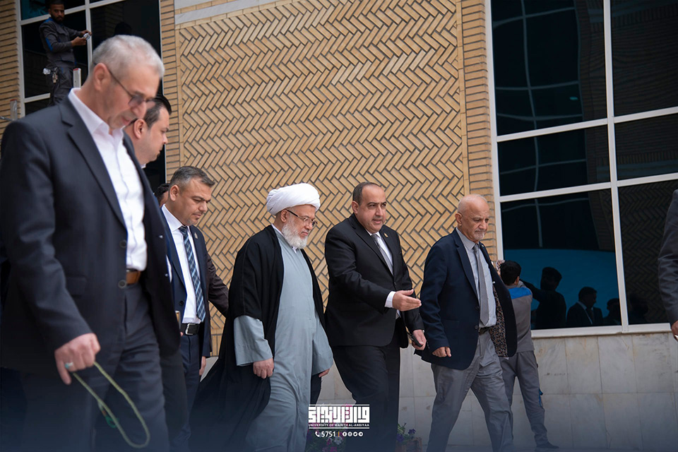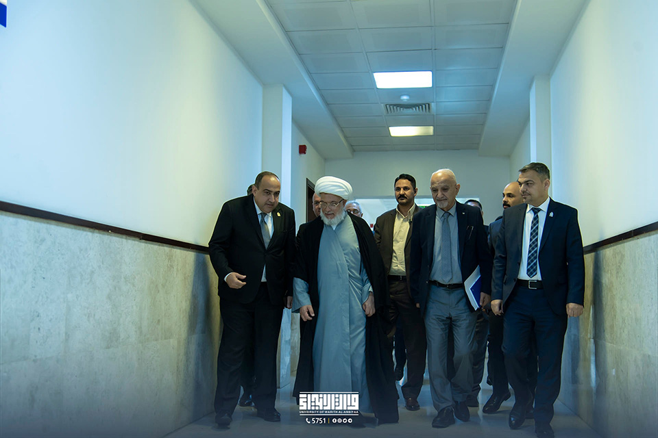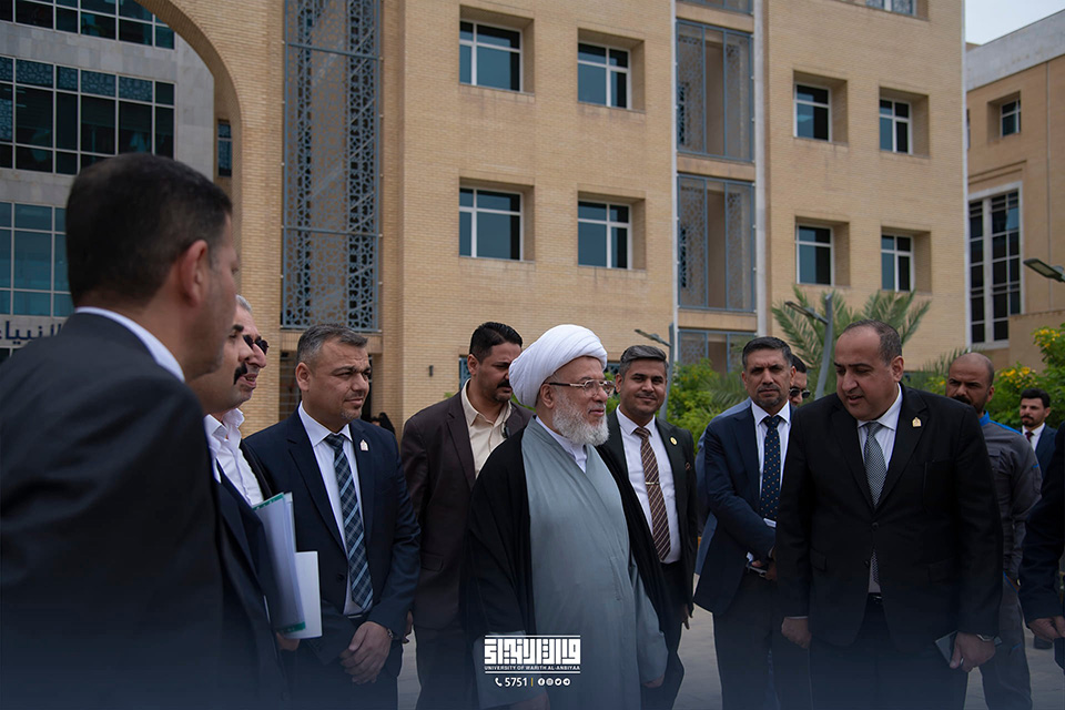 His Eminence Sheikh Abdul Mahdi Al-Karbalai stressed the importance of paying attention to the scientific aspect and using all available capabilities for that, as well as attracting both Iraqi and international competencies and expertise to teach at the university, support scientific research, and encourage researchers in this area with the aim of reflecting a positive image on the quality of scientific outputs. The visit was intended to discuss ways to develop the educational process, from the scientific, academic, and administrative aspects, in an effort to achieve the desired goals of advancing and distinguishing the educational mission. His Eminence emphasised the significance of considering psychological and educational counsel, pointing out that it is just as vital as the scientific part.