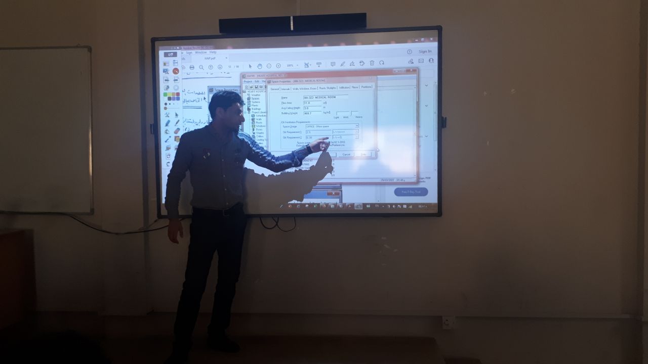 Today, Monday, March 28, 2022, the Air Conditioning and Refrigeration Technology Engineering Department at the College of Engineering held a training course for calculating thermal loads using the Hap program, which was attended by the teaching course in the aforementioned department, M. M. Karar Abdel Ahmed Al Mansouri, in the presence of the honorable head of the department and elite members of the advanced staff of the department, where I discussed The course explains how to use the program's vocabulary in detail, with some practical exercises. And God bless you
