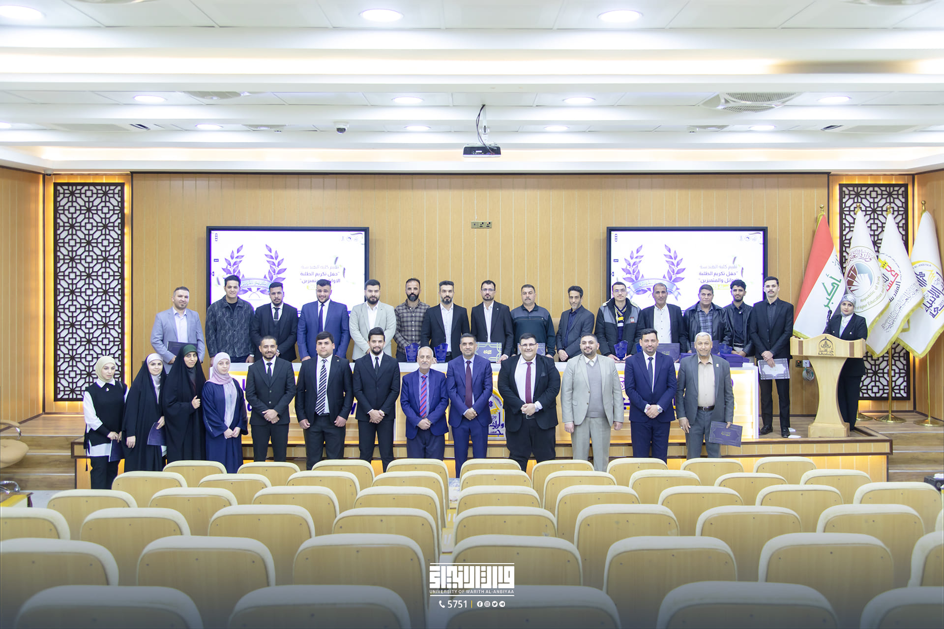 During his speech on the occasion, the Dean of the College of Engineering expressed his thanks and appreciation to all the teaching and administrative staff of the College of Engineering and the students for their high commitment and excellence and the emphasis on all students to be diligent in seeking knowledge and to emulate their outstanding colleagues.