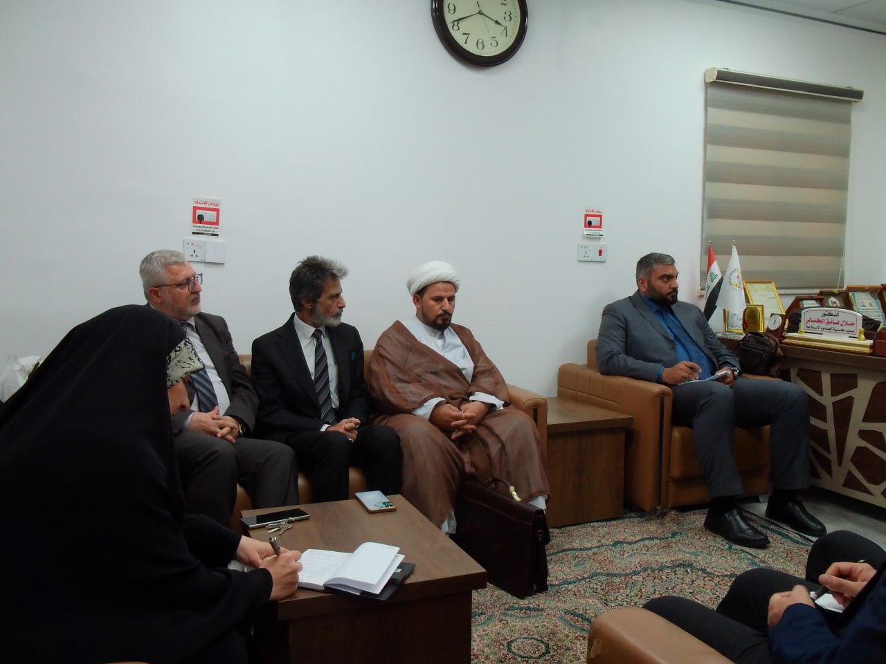 As part of the ongoing collaboration between the College of Islamic Sciences and the Central Library of the Holy Shrine of Imam Hussain (peace be upon him), the College Library, under the patronage of the Honorable Dean, hosted the second meeting between the participating parties to discuss mechanisms for implementing the terms of cooperation between the College and the Central Library of the Holy Shrine.