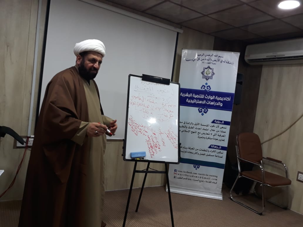 Delivering a lecture in the Al-Hussain Shrine