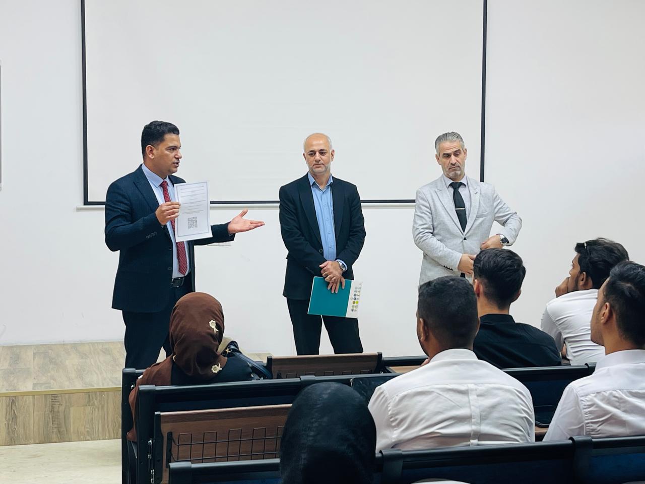 During the visit, the members of the "Words of Light" project team, Dr. Muntadher Shukr and Dr. Abbas Adnan, provided a detailed explanation of the importance of the project in supporting the connection to the Qur'anic texts and achieving integration between academic and cultural aspects. The students also had the opportunity to learn about the stages of the project and its goals in building a spiritual and scientific relationship with the Holy Qur'an through the writing experience.