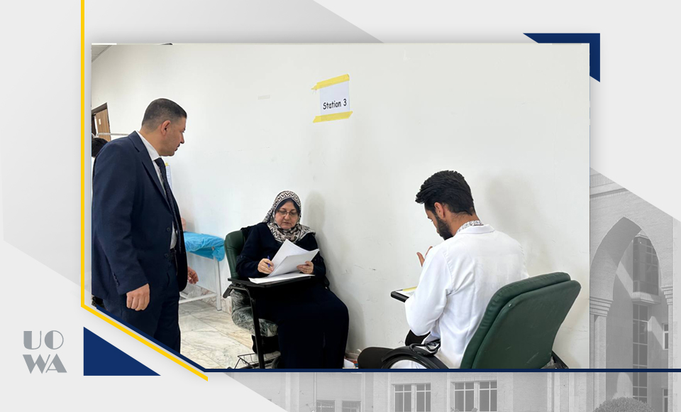 Under the direct supervision of the Dean of the College of Medicine at the University of Warith Al-Anbiya (peace be upon him), Professor Dr. Ali Abdul Saadoun Al-Ghazi, and the follow-up of the Assistant Dean for Scientific Affairs, Dr. Laith Muhammad Abbas, and the Assistant Dean for Administrative Affairs, Dr. Anwar Al-Dahan, the clinical (OSCE) exam was conducted today for fourth-year students. This exam is considered one of the basic requirements for assessing the practical and theoretical skills of stu