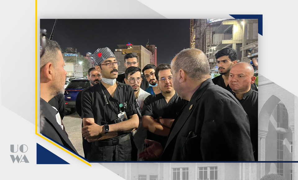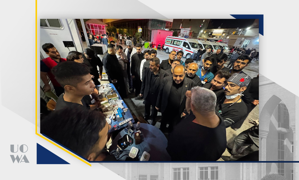 The President of Warith al-Anbiya University (peace be upon him), Professor Ibrahim Saeed al-Hayawi, accompanied by the Dean of the College of Medicine, Professor Ali al-Ghazi, conducted a field tour to inspect the medical detachments participating in providing health services to visitors of Imam Hussein (peace be upon him) during the Ashura ceremonies. The tour included an inspection of the workflow of the field detachments in which medical students participate, and an assessment of their readiness to deal with emergency situations and provide first aid. This reflects an aspect of the practical field training that the university is keen to provide for its students.
