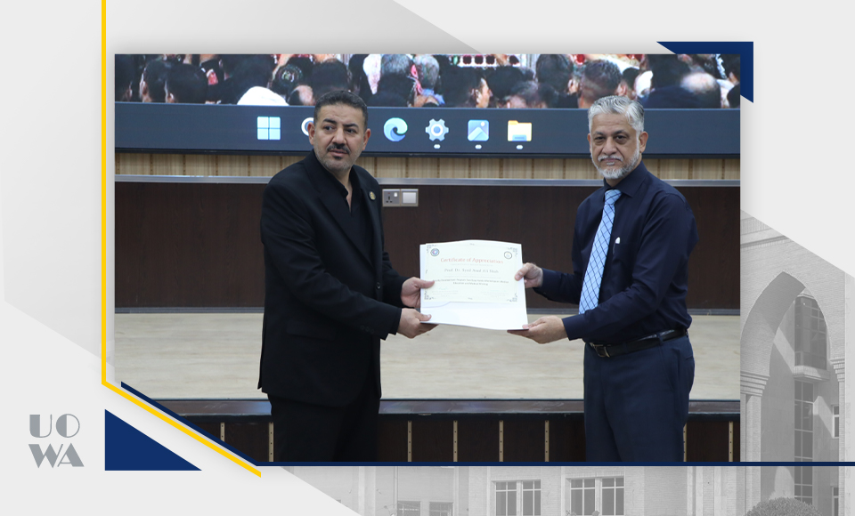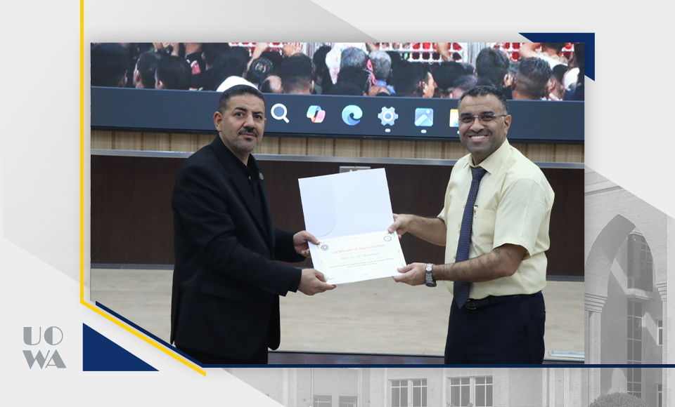In an atmosphere of appreciation and recognition, the Dean of the College of Medicine, Professor Ali Abdul Saadoun al-Ghazi, honored the lecturers in recognition of their scientific efforts and active contributions to the success of this workshop.