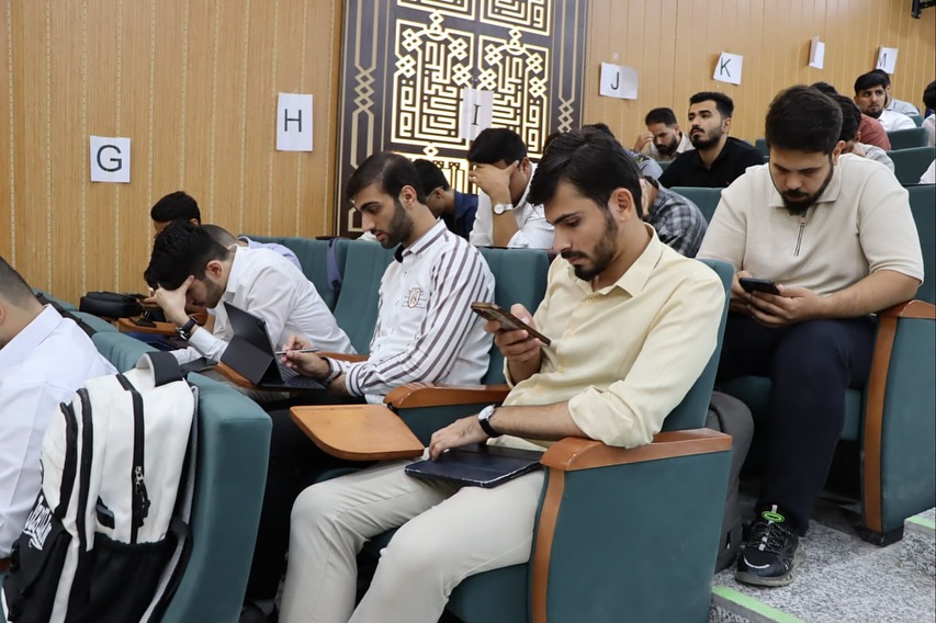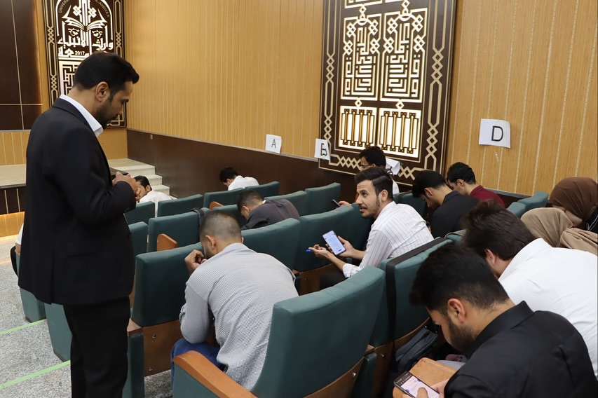 The images show the students' serious engagement during the electronic exams and the smooth flow of the examination process at the College of Medicine, Warith Al-Anbiya University (peace be upon him)