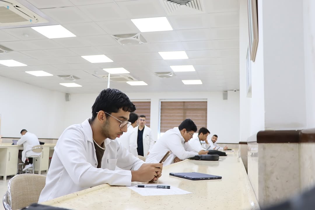 In line with the directives of the Ministry of Higher Education and Scientific Research to support digital transformation and e-learning, and under the direct guidance of the Dean of the College of Medicine, Professor Dr. Ali Abdul Saadoun Al-Ghazi, and the follow-up of the Assistant Dean for Scientific Affairs, Professor Dr. Laith Mohammed Abbas Al-Husseini, the college organized a series of interactive electronic exams this week covering various academic levels.