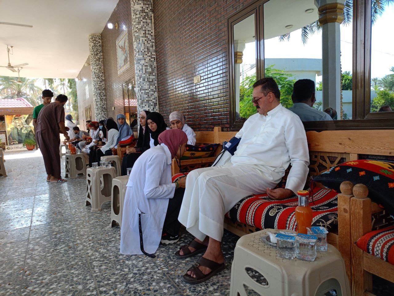Within the community service activities of the College of Nursing, fourth-year students of the Community Health Nursing Department visited Al-Hussainiya District and provided nursing services to the residents and health education for some communicable diseases.