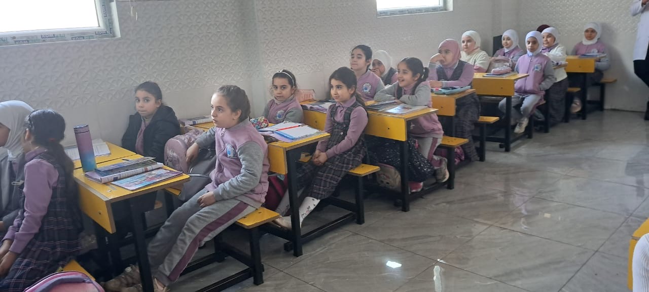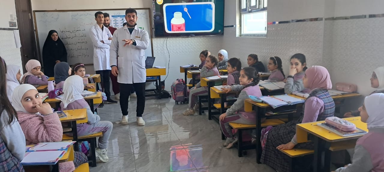 Under the direction of the esteemed Dean of the College of Nursing, Professor Dr. Murtada Ghanem Adai, fourth-year students in the Community Health Nursing Department, under the supervision of faculty members, visited Sama Al-Rayyan Elementary School as part of the practical requirements for the Community Health Nursing course. The students provided health education to the school's students on several topics, most notably proper nutrition and its impact on children's health and academic achievement. They also provided first aid, personal hygiene, the importance of handwashing, and safe play and non-harmful activities. The school environment and services provided to students were also evaluated.