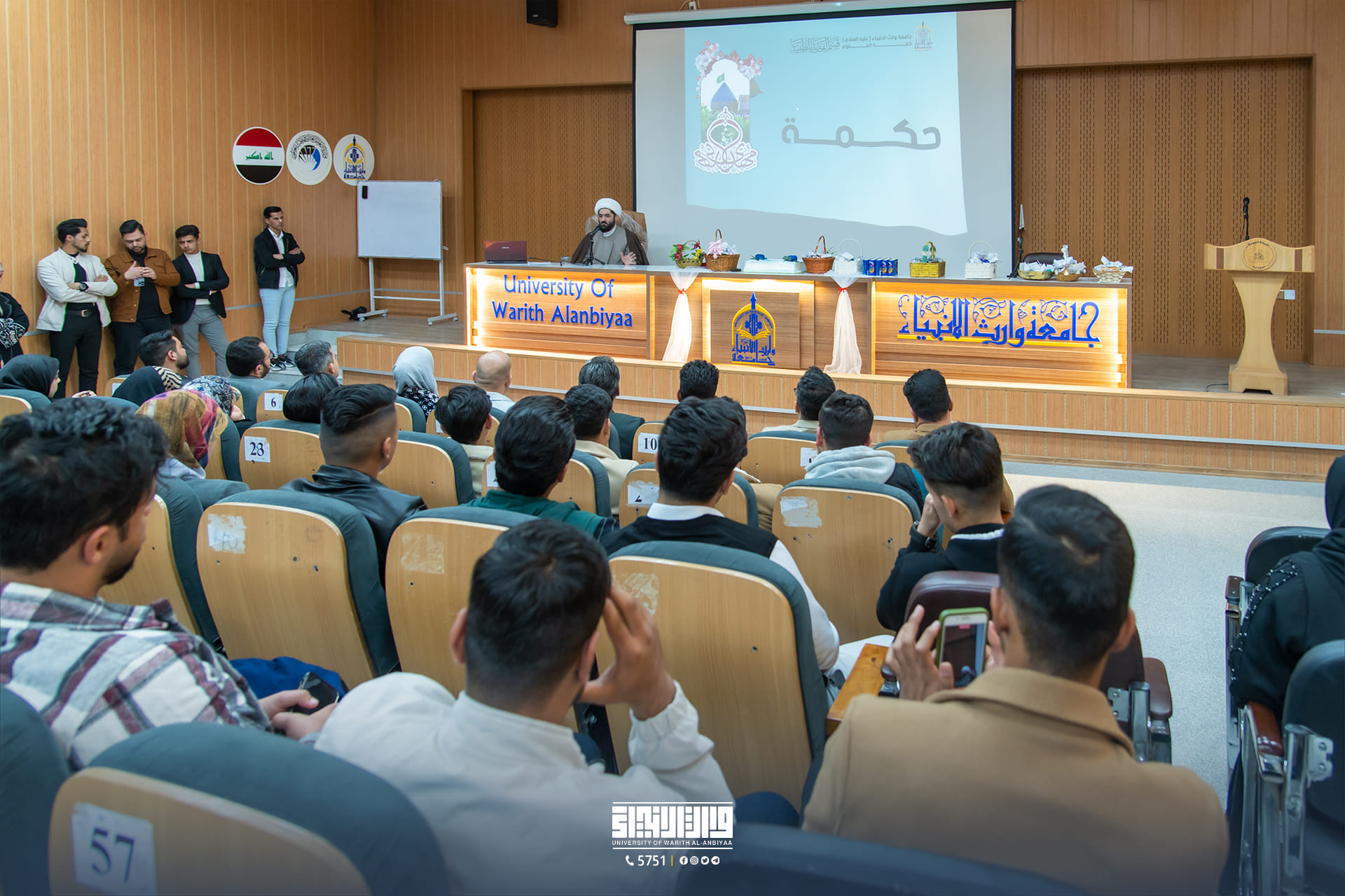 The students of the Department of Medical Physics at the College of Science at the University of Warith al-Anbiya (peace be upon him) held a joyful celebration on the anniversary of the birth of Imam Mahdi. The students hosted His Eminence Sheikh Ahmad al-Durr al-Amili, who gave a religious and moral lecture to the students. The ceremony included poetic contributions and poems with love for the Prophet’s family, which he recited. College students.
