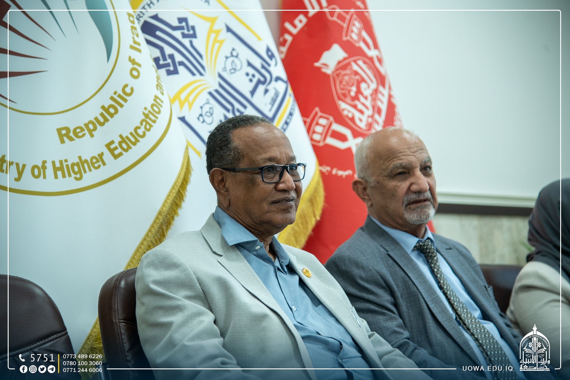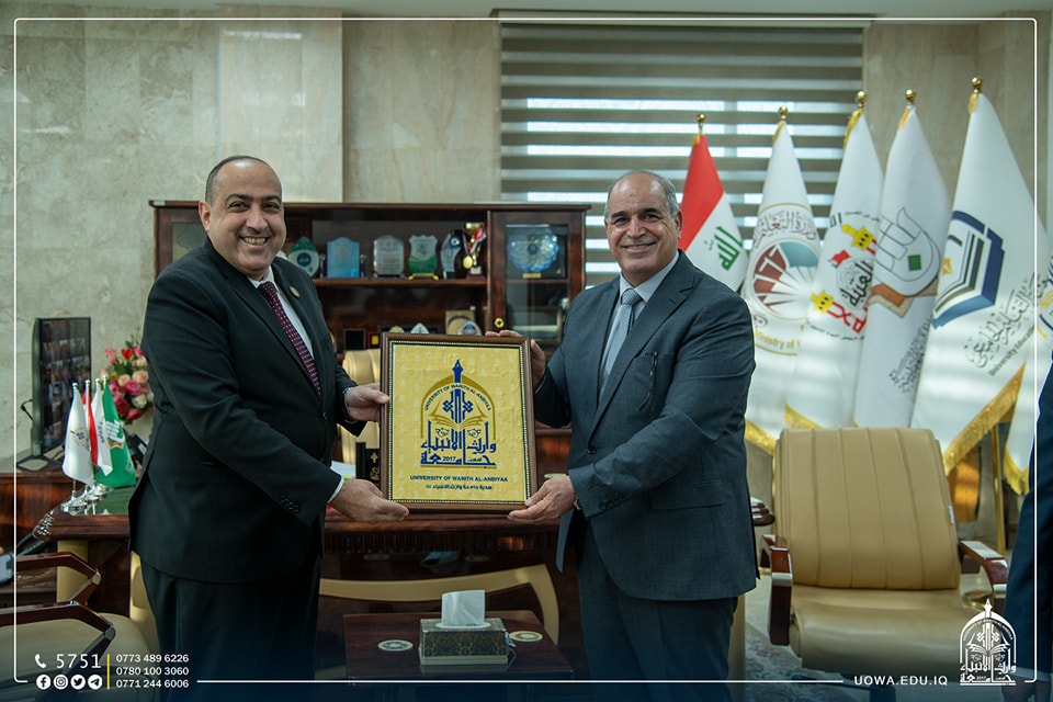 During his visit to Warith Al Anbiyaa University and his meeting with the President of the University, Prof. Ibrahim Al-Hayawi, Prof. Shafiq Al-Mawla, President of Alayen University, explained the possibility of scientific and academic cooperation between the two universities. In addition to the two parties' emphasis on implementing the strategy of the Ministry of Higher Education in developing plans to enter the international rankings and the possibility of receiving foreign students in our universities.
